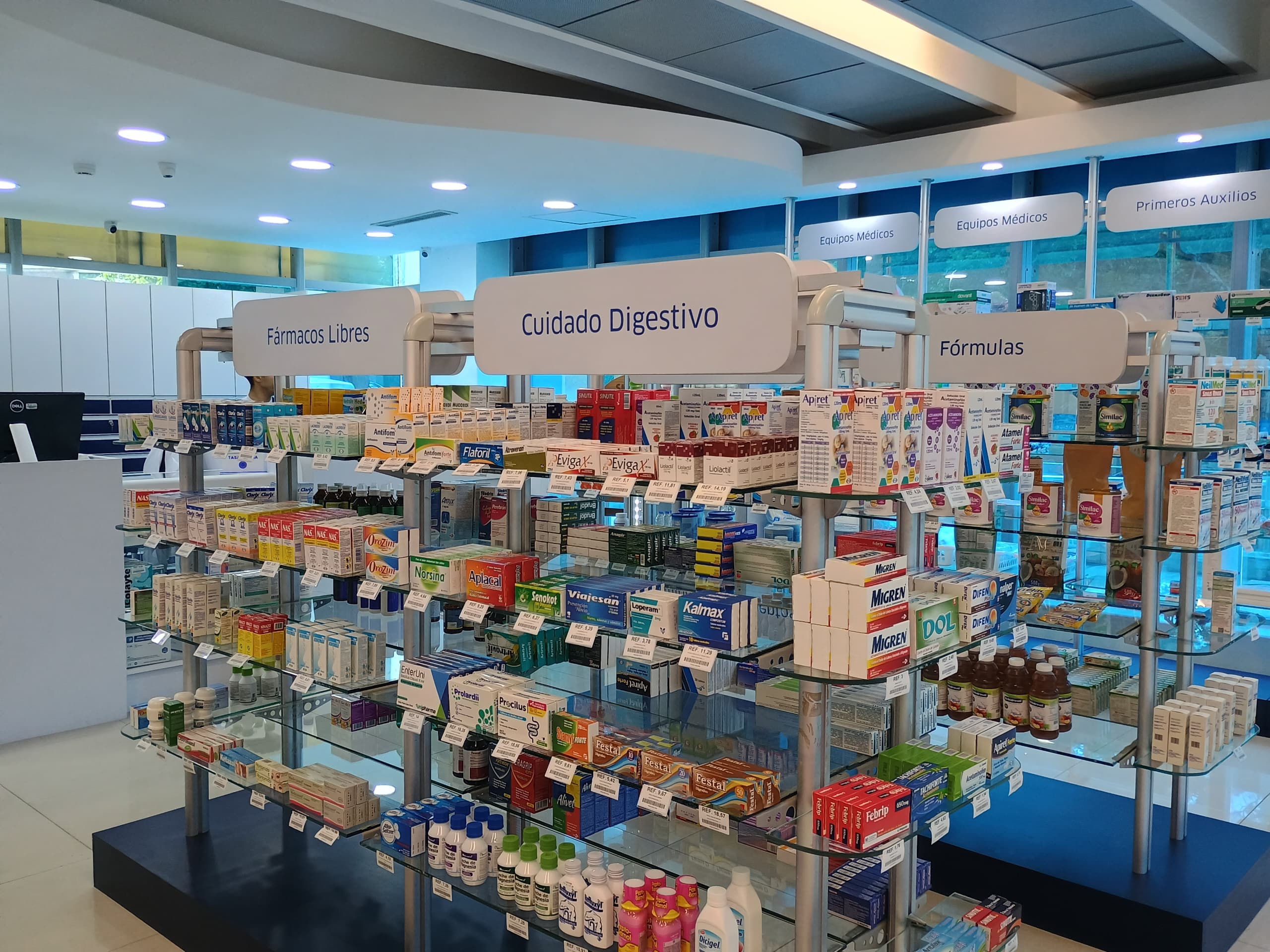 La farmacia se distingue por su extenso y bien surtido inventario, que abarca desde equipos médicos de última generación y una amplia variedad de material de suministros, hasta una selección exhaustiva de medicamentos clasificados según las diferentes especialidades clínicas.