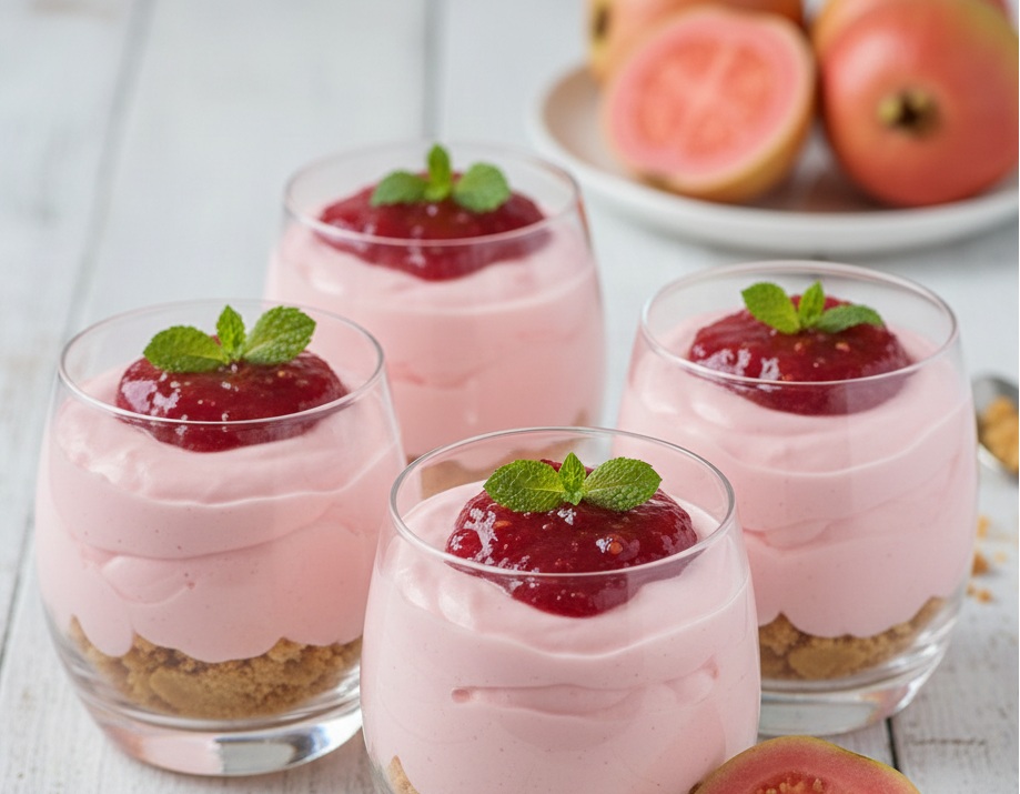 - Presentación: Servir en copas sobre la base de galletas trituradas y coronar con una cucharada adicional de mermelada de guayaba pura para resaltar el brillo y el aroma frutal.