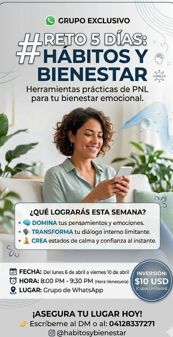 Bajo esta premisa nace una propuesta de acompañamiento basada en la Programación Neurolingüística (PNL), enfocada en brindar herramientas prácticas durante cinco días consecutivos, con el objetivo de fortalecer el bienestar emocional desde un enfoque cercano y aplicable a la vida cotidiana. Más que un reto en el sentido tradicional, se plantea como un proceso breve, accesible y profundamente humano.